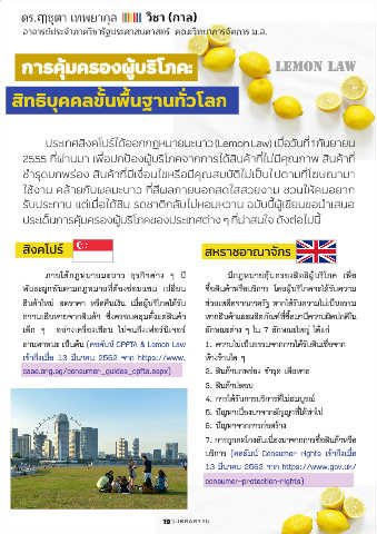 ประเทศสิงคโปร์ได้ออกกฎหมายมะนาว (Lemon Law) เมื่อวันที่ 1 กันยายน