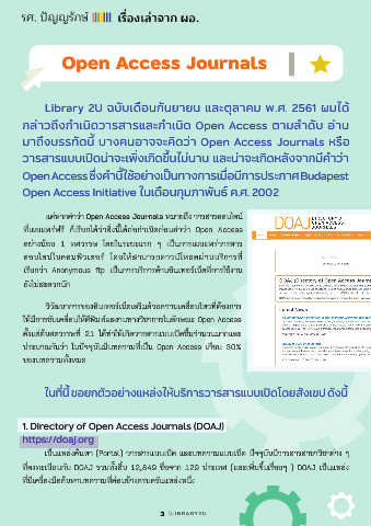 กล่าวถึงก�าเนิดวารสารและก�าเนิด Open Access ตามล�าดับ อ่าน