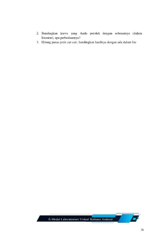 2. Bandingkan kurva yang Anda peroleh dengan sebenarnya (dalam literatur), apa perbedaannya? 3. Hitung panas jenis zat cair, bandingkan hasilnya dengan ada dalam lite 26