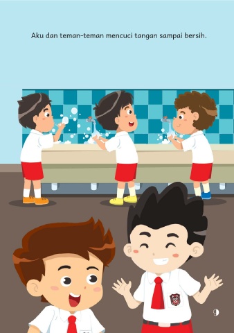 Aku dan teman-teman mencuci tangan sampai bersih. 9
