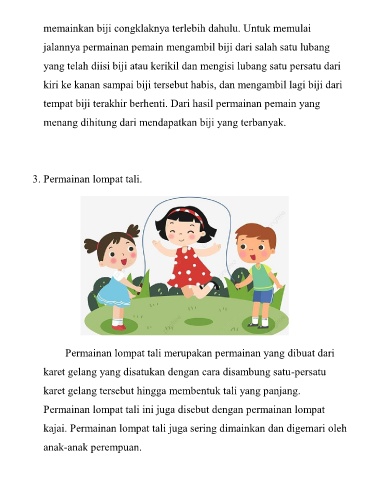 kajai. Permainan lompat tali juga sering dimainkan dan digemari oleh