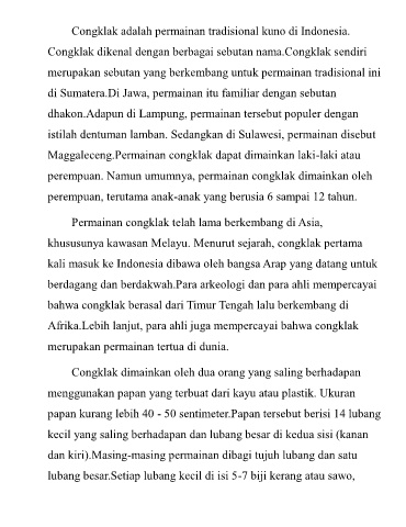 perempuan. Namun umumnya, permainan congklak dimainkan oleh