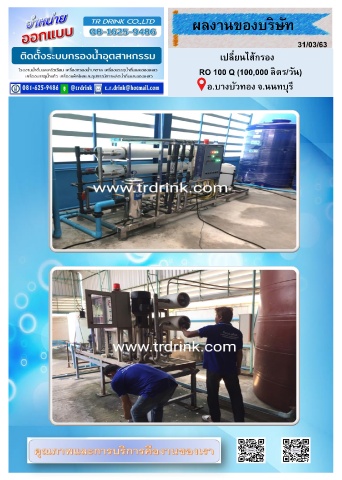 ผลงานของบริษัท 31/03/63 ี่ ้ เปลยนไสกรอง RO 100 Q (100,000 ลิตร/วัน) อ.บางบัวทอง จ.นนทบุร ี