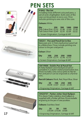 Pen/cil Colours: Black, Red, Royal Blue, Silver