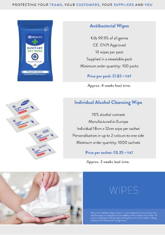 Individual 18cm x 12cm wipe per sachet