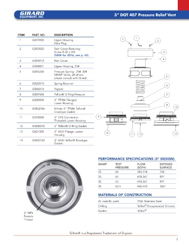 PERFORMANCE SPECIFICATIONS (3” DESIGN) - 407T VENT, 25#, 3" NPT