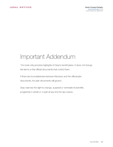 This book only provides highlights of Gray’s benefit plans. It does not change