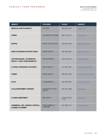 CONT ACT YOUR PROVIDERS Quick Contact Details: