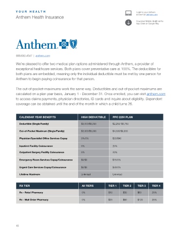 We’re pleased to offer two medical plan options administered through Anthem, a provider of