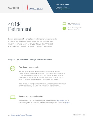 Gray’s 401(k) Retirement Savings Plan At-A-Glance