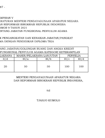 JUMLAH ANGKA KREDIT KUMULATIF MINIMAL UNTUK PENGANGKATAN DAN KENAIKAN JABATAN/PANGKAT