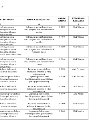 4. Melakukan bimbingan atau penyuluhan Laporan pelaksanaan 0,040 Ahli Muda