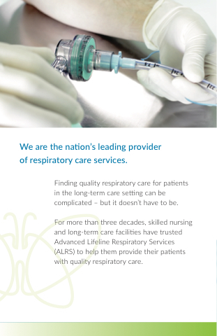 We are the nation’s leading provider of respiratory care services Finding quality respiratory care for patients in ttin the long-term care setting can be complicated – but it doesn’t have to be For more than three decades skilled nursing and long-term care facilitities have trusted Advanced Lifeline Respiratory Services (ALRS) to help them provide their patitients with quality respiratory care