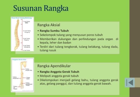 • Terdiri dari tulang tengkorak, tulang belakang, tulang dada,