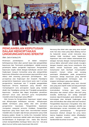 keputusan begitu dekat dengan kehidupan sekolah baik konsekuensi baik (berhasil menyelesaikan