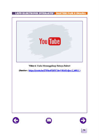LKPD ELEKTRONIK INTERAKTIF BAKTERI FASE E SMA/MA Video 6. Usaha Menanggulangi Bahaya Bakteri (Sumber : https://youtu.be/27F8ceP245Y?si=VHAfL4jsc-2_b0LU ) 54