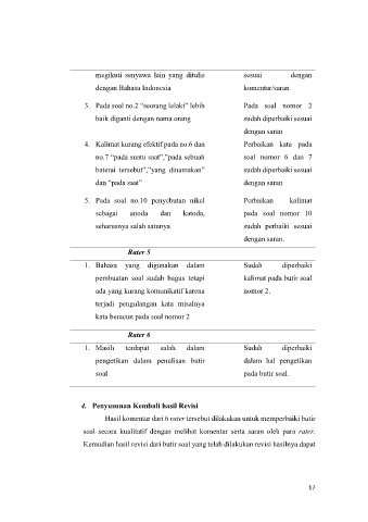 Hasil komentar dari 6 rater tersebut dilakukan untuk memperbaiki butir