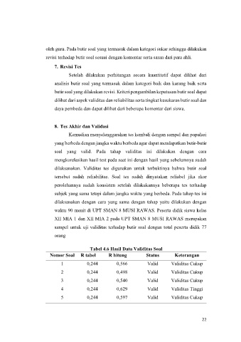 soal yang valid. Pada tahap validitas ini dilakukan dengan cara