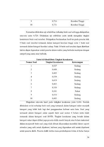 9 butir soal tersebut termasuk dalam kategori korelasi tinggi serta 1 butir soal