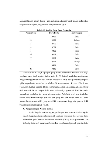 mendapatkan 25 menit dalam 1 jam pelajaran sehingga untuk materi didapatkan