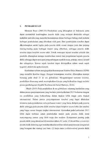 peserta didik yang dimaksud dirumuskan dalam 4C yaitu: (1) kreatifitas (creativity)