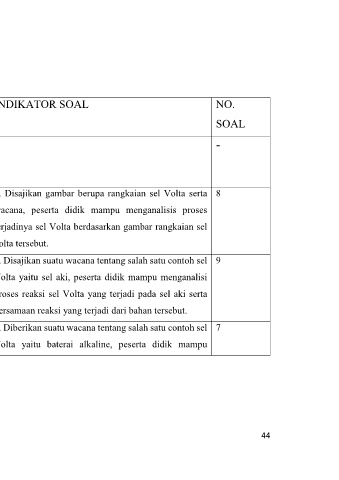 INDIKATOR SOAL peserta wacana, volta tersebut. baterai yaitu Volta