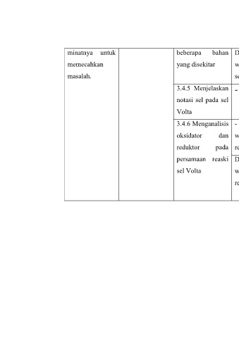 bahan 4 serta volta sel rangkaian gambar suatu Diberikan wacana, peserta didik mampu memprediksi diagram sel sesuai dengan gambar dan wacana tersebut Menjelaskan - - 2 serta Volta sel tentang reaksi persamaan Diberikan - wacana, peserta didik mampu menganalisis persamaan dan reaksi, oksidator tersebut. pada 1 serta Volta sel tentang reaksi persamaan Diberikan reaski wacana, peserta didik mam