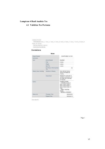 Lampiran 4 Hasil Analisis Tes 4.1 Validitas Tes Pertama 52