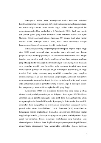 dikuasai untuk pembelajaran di sepanjang hidupnya. Kemampuan HOTS ini harus