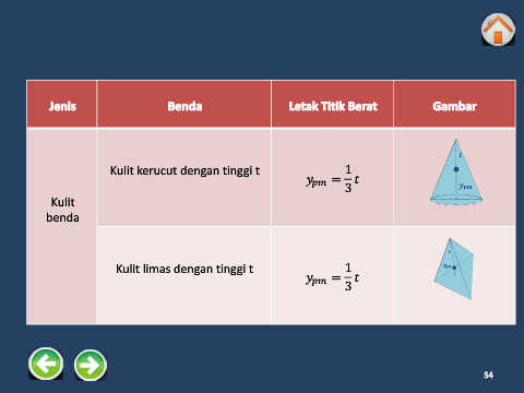Jenis                            Benda                            Letak Titik Berat                       Gambar
