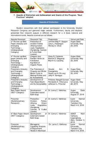 7. Awards of Distinction and Achievement and Grants of this Program. “Best
