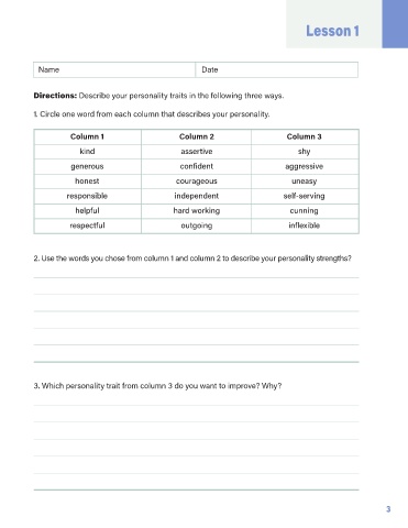 2. Use the words you chose from column 1 and column 2 to describe your personality strengths?