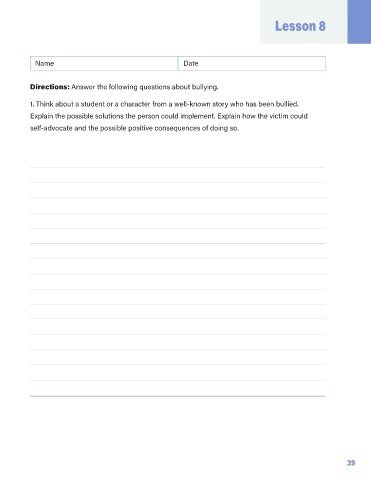 Directions: Answer the following questions about bullying.