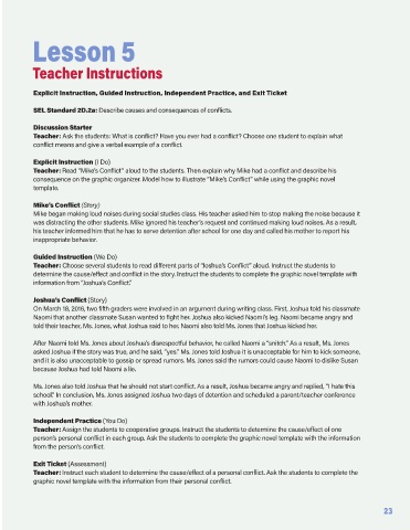 Teacher: Choose several students to read dierent parts of “Joshua’s Conflict” aloud. Instruct the students to