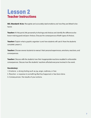 Teacher: Discuss with the students how their inappropriate reactions resulted in unfavorable