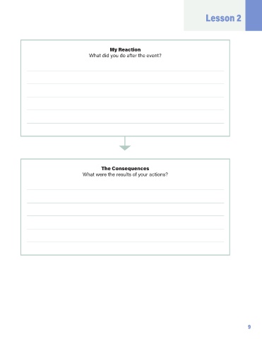 Lesson 2 My Reaction What did you do after the event? The Consequences What were the results of your actions? 9 Book_for_Teachers_July_29.indd 9 12/1/21 3:00 PM