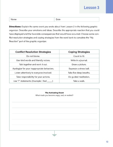 flict resolution strategies and coping strategies from the word bank to complete the “My