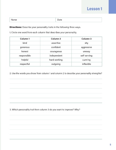 2. Use the words you chose from column 1 and column 2 to describe your personality strengths?