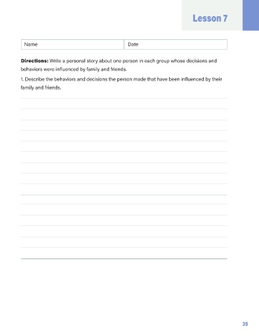 Directions: Write a personal story about one person in each group whose decisions and