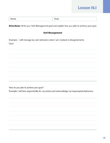 Example: I will manage my own behaviors when I am involved in disagreements.