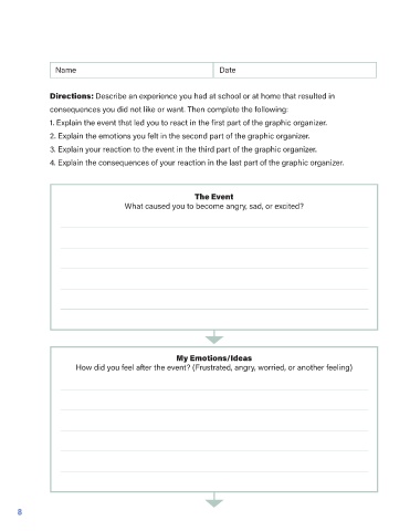1. Explain the event that led you to react in the first part of the graphic organizer.