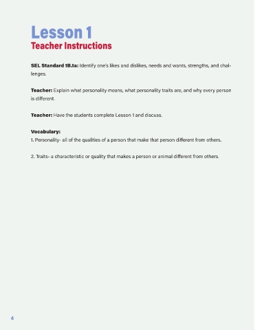 Teacher: Have the students complete Lesson 1 and discuss.