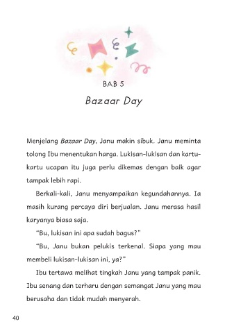 masih kurang percaya diri berjualan. Janu merasa hasil