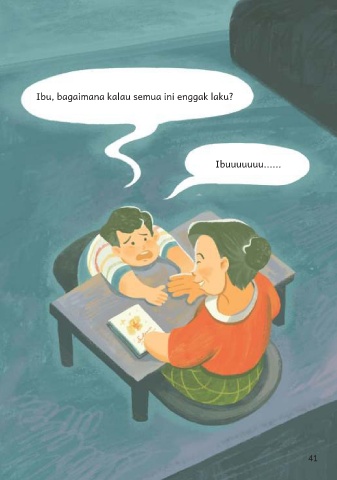 Ibu tertawa melihat tingkah Janu yang tampak panik.