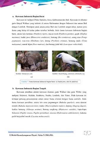 Gambar 7. Fauna kawasan Indonesia bagian barat: (a) badak jawa, dan (b) jalak bali