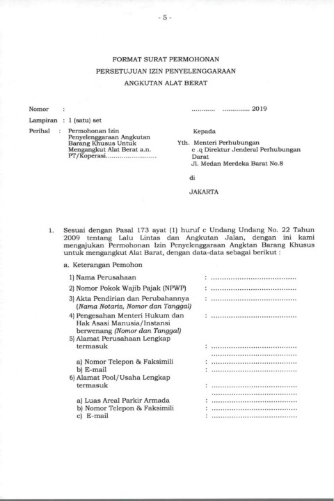 mengajukan Permohonan Izin Penyelenggaraan Angktan Barang Khusus
