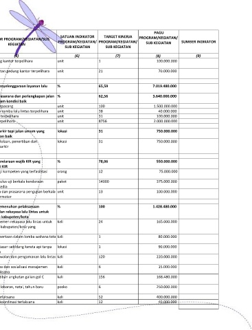SATUAN INDIKATOR PROGRAM/KEGIATAN/ SUB KEGIATAN (6) unit unit % % unit unit unit unit lokasi lokasi % orang paket % kali lokasi kali kali kali posko kali kali