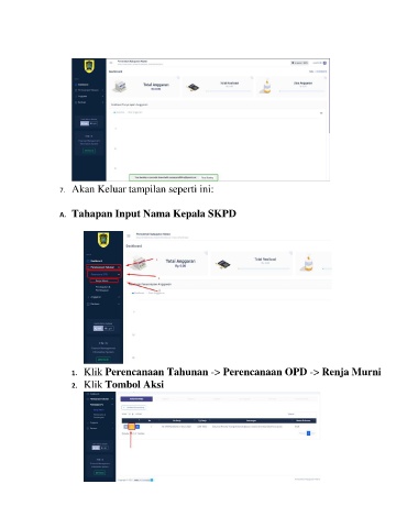 7. Akan Keluar tampilan seperti ini: A. Tahapan Input Nama Kepala SKPD 1. Klik Perencanaan Tahunan -> Perencanaan OPD -> Renja Murni 2. Klik Tombol Aksi