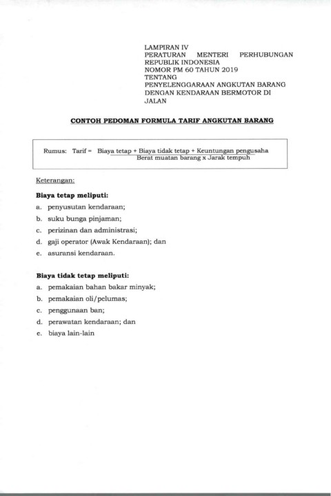 CONTOH PEDOMAN FORMULA TARIF ANGKUTAN BARANG