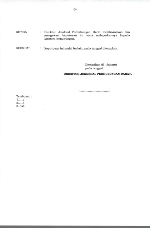 KETIGA : Direktur Jenderal Perhubungan Darat melaksanakan dan